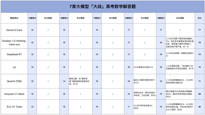 高考数学全卷重赛!一道题难倒所有大模型,新选手Gemini夺冠,豆包DeepSeek并列第二