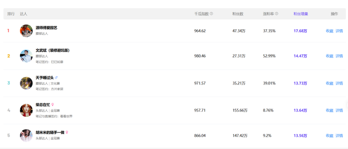 这几位博主的内容创作方向还均不相同,比如涨粉榜第一名的 @源师傅爱园艺 主攻园艺养护;@文武斌 主要从“内行人”的视角辅助粉丝装修避坑;@天予睡过头 则聚焦居家场景,对各类家居家电进行手工爆改。