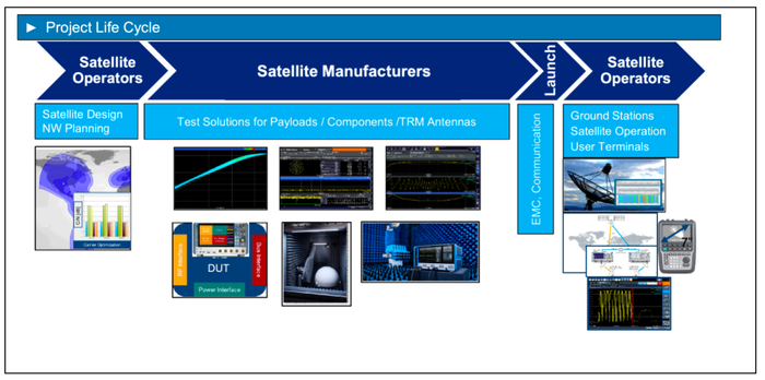 卫星通信系统的发展面临一系列的挑战与测试,如巨型低轨星座的组网、高吞吐量、高工作频段(Ka波段、Q波段、 V波段)、高带宽、多波束控制(采用相控阵天线)、低成本(要求卫星生产和发射成本更低)等。地面接收终端和卫星之间距离遥远,因而会影响链路预算或造成高路径损耗。此外,这种超远距离也是造成较大时间延迟 (RTT) 的原因,该值因时间和仰角而异。相较于地面网络这是一种范式变化,而低轨卫星以非常快的速度运行,由此将导致频率载波偏差,也称多普勒频移。最后,电离层的无线电波传播会造成波形极化旋转,学术界称之为法拉第旋转。面对这些技术挑战,罗德与施瓦茨公司将提供创新的非地面测试的测量解决方案,可帮助客户在卫星的研发、生产、发射、维护及运营过程中,更好的进行设计、开发和测试,以满足客户对性能、成本和时间的要求。