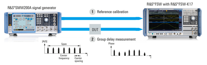 使用矢量信号源SMW200A和信号分析仪FSW进行多载波群时延测量