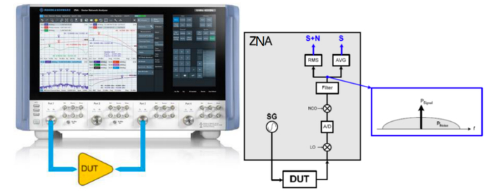 罗德与施瓦茨公司的矢量网络分析仪ZNA,配备噪声系数测量选件K30而无需外置噪声源配合即可完成变频、非变频器件的噪声系数测试。支持一次连接完成增益、噪声系数、驻波等所有指标测试,提高测试效率,特别适合,元器件测量、芯片级在片测试等。