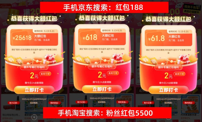首先,划重点!今年京东的618最新红包口令是「红包188」,淘宝618最新红包口令是「粉丝红包5500」要记住!