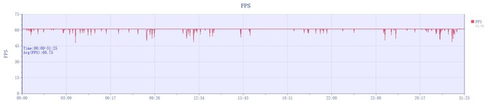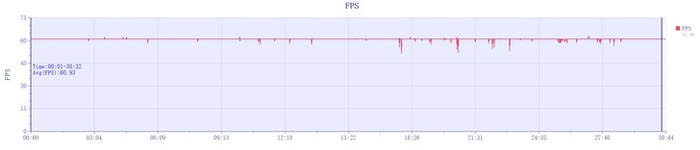 原生帧率下半小时游戏平均帧率为60fps满帧
