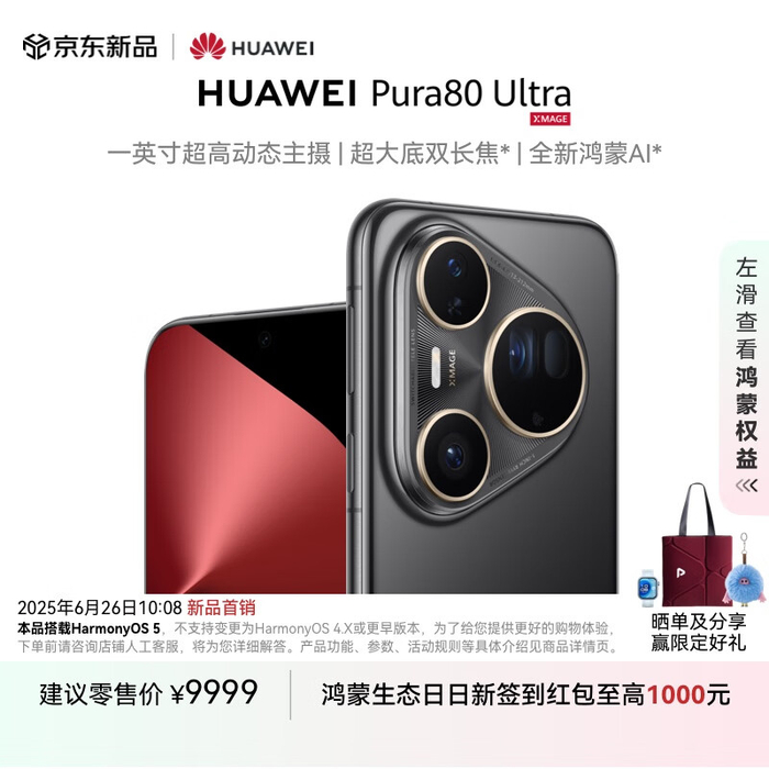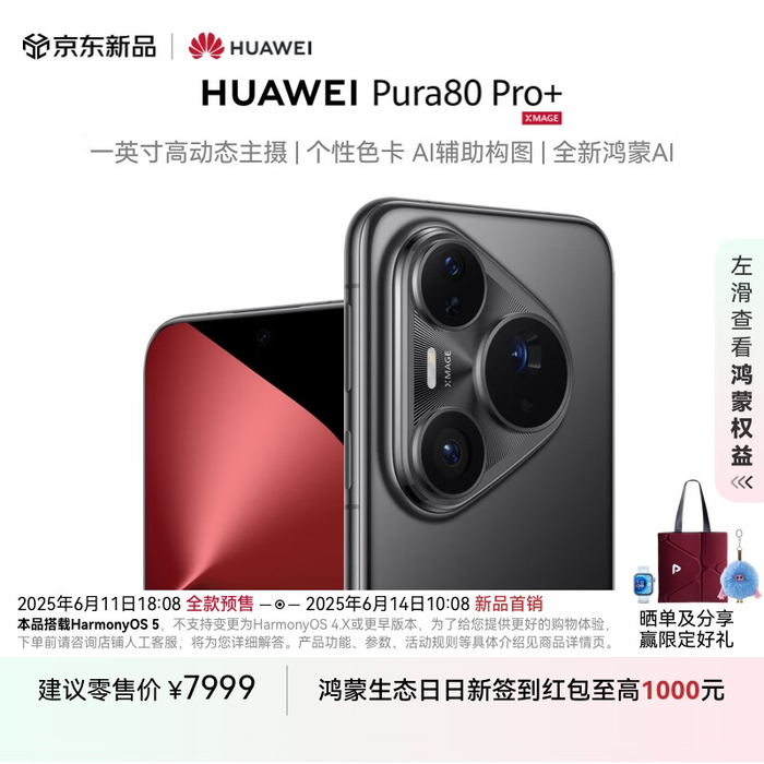 18:08 开抢:华为 Pura 80 Pro 系列 6499 元起首销,搭载一英寸主摄