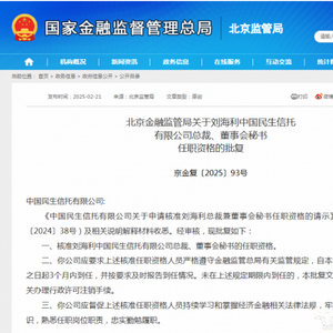 近日,运营商财经网从国家金融监管总局北京监管局官网获悉,刘海利出任中国民生信托有限公司(简称民生信托)总裁兼董事长秘书。下面,运营商财经网将梳理刘海利的过往经历。