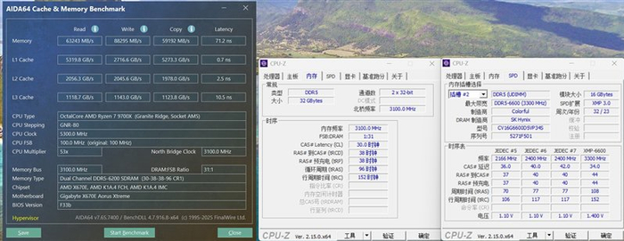 AMD平台使用的是七彩虹CVN DDR5-6600 16GBx2,测试时我们将频率降到6200MHz,时序调为30-38-38-96,同时开启技嘉主板的XMP/EXPO High Bandwidth Support(XMP/EXPO高带宽支持)。