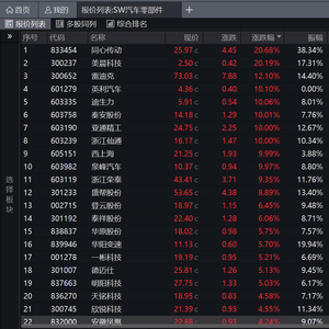 从汽车零部件板块连续涨停个股来看,据2024年财报,美晨科技主营业务为各种流体输送系统产品、悬架减振系统产品的研发、设计、制造和销售,产品广泛应用于乘用车、商用车等领域;英利汽车主营业务为车身结构零部件及防撞系统零部件的设计、研发、制造及销售;迪生力主营业务为汽车铝合金轮毂及汽车轮胎、新能源汽车铝合金配件;西上海主营业务是汽车零部件的研发、生产和销售以及为汽车行业提供综合物流服务;泉峰汽车主要从事汽车关键零部件的研发、生产、销售。