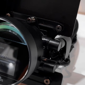 其中标准变体的冷头顶部是一个倾斜的圆环,上部留空透光,下部则内嵌了一块 2.4 英寸的方形 320×240 显示屏。