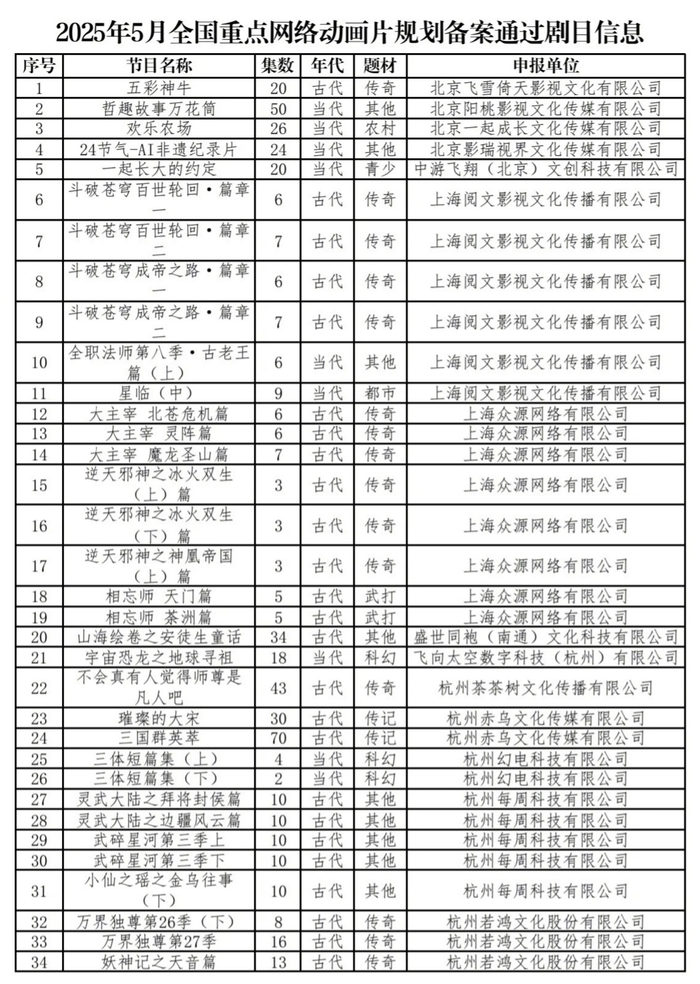 IT之家 6 月 12 日消息,2025 年 5 月全国重点网络动画片规划备案日前公布,《三体短篇集(上)》和《三体短篇集(下)》备案,共有 6 集,申报单位是B站关联企业杭州幻电科技有限公司。