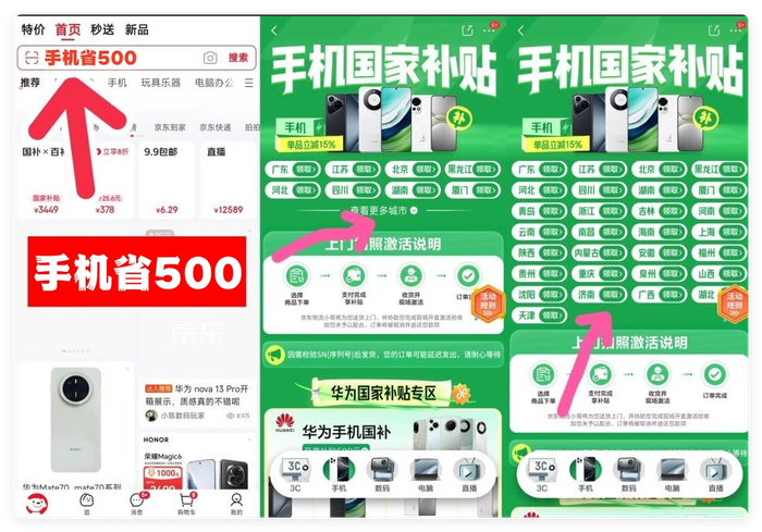 首先,划重点!手机数码国补的领取方法是:京东APP搜「手机省500」或「数码省2000」国补直接立减2000元,家电国补的领取方法是:京东APP搜「家电省2000」领取。
