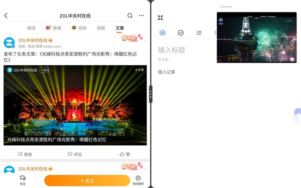 应用界面三指上滑既可分屏,实际用起来切换非常灵活,比如一边刷微博,一边记笔记,还能悬浮一个视频窗口看视频,满足多任务场景需求。而且它和手机、电脑之间的文件互通特别顺畅,不管是跨屏复制粘贴,还是文件直接拖过去编辑,省了很多折腾的时间。