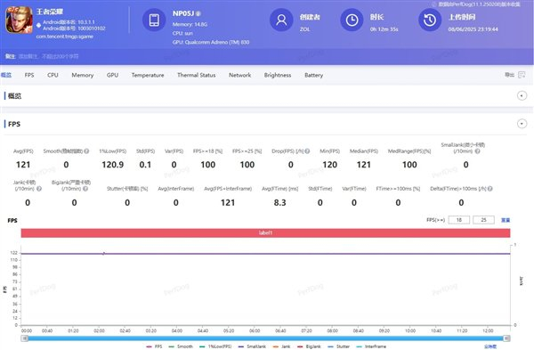 至于王者荣耀这类高帧率MOBA游戏,在开启极致画质+120帧后,团战中的帧率仍能稳定在120帧以上,没有丝毫压力。