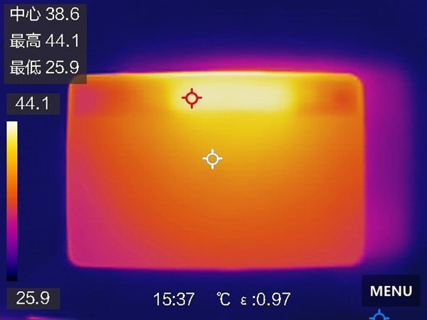 连续游玩半小时后,后壳最高温度44.1℃,不算特别烫,同时游戏帧率也很稳,说明散热完全压得住。红魔电竞平板3 Pro有着业内顶级的散热体系,ICE魔冷散热系统由主动+被动两部分组成,其中涡轮增压风扇驭风2.0,转速高达20000 r/min,同时行业首创双层夹芯VC、液态金属,进一步提升了核心的散热效率。在ICE魔冷散热系统的加持下,红魔电竞平板3 Pro的性能释放更激进,同时又做到了稳定持续。