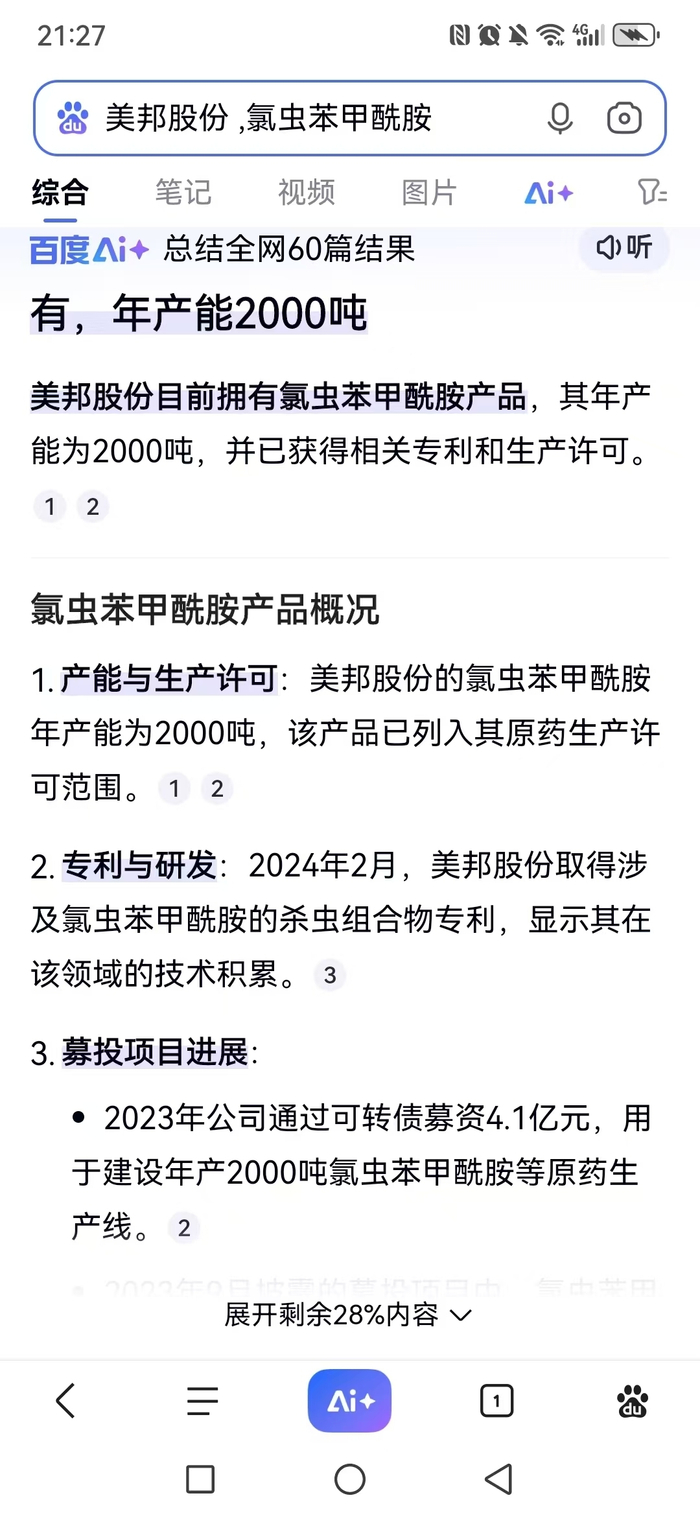 今天第一个涨停的是美邦股份,那么,它有氯虫苯甲酰胺的产能么?