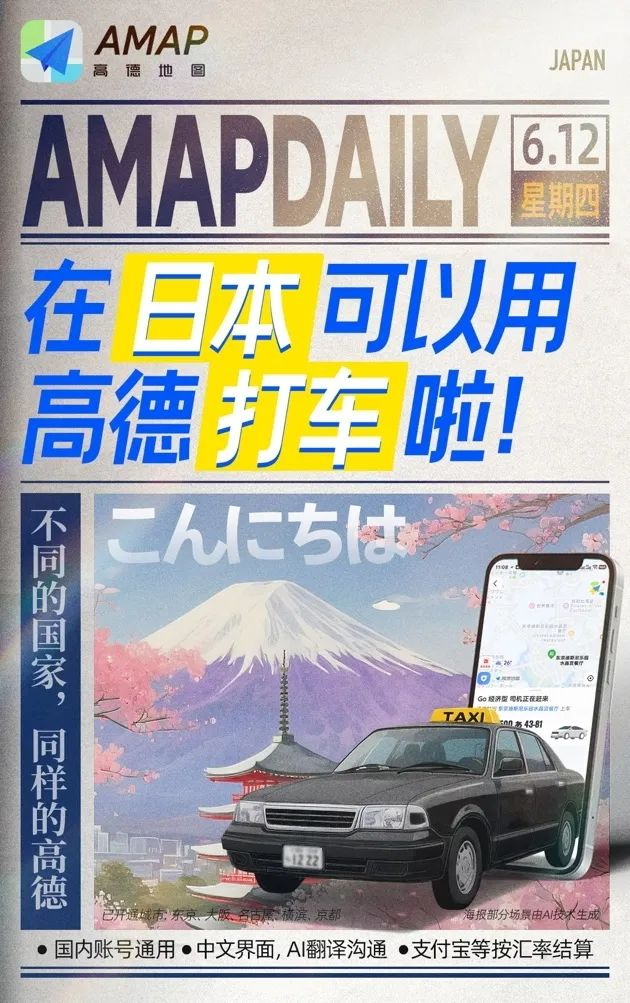 高德地图在日本上线打车服务,支持用中文地址一键呼叫当地出租车