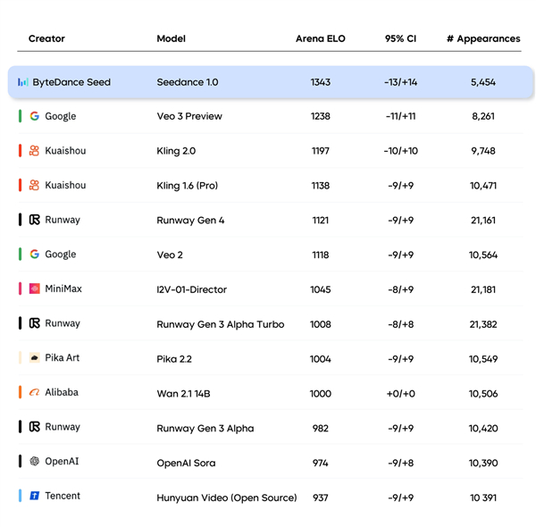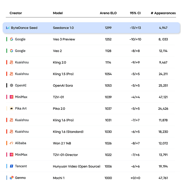 Artificial Analysis 文生视频榜单,数据截至 2025-06-09 11:00 (GMT+8)