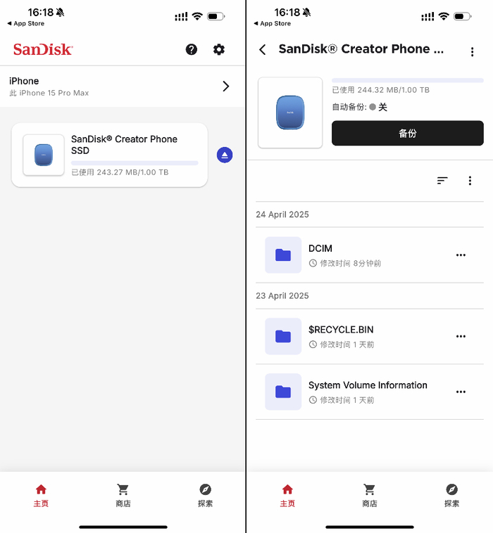 此外,闪迪还为移动存储设备提供了文件管理工具,在应用商店下载安装SanDisk Memory Zone之后,就可以方便地命名设备,管理文件,设置备份等等,让创作者在手机上也能方便地管理素材和备份重要数据。