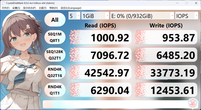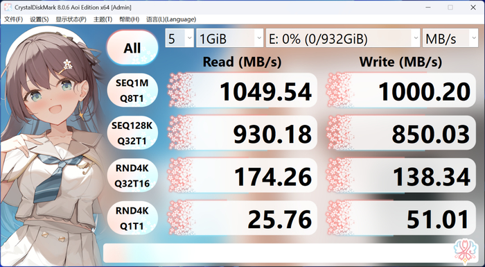 我们使用CrystalDiskMark进行基准测试,使用随附的USB-C连接线,实测顺序读取成绩达到1040MB/s,顺序写入成绩突破1000MB/s,均超过了标称数据,意味着传输一部10GB的4K视频文件仅需约10秒,大大提升了创作效率。