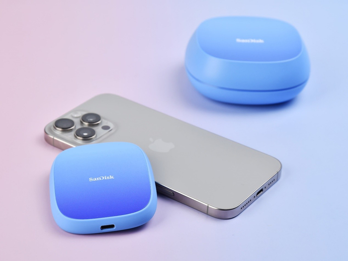 尽管闪迪创作者磁吸手机移动固态硬盘在CES2025上就已经亮相,但是再次见到它仍然觉得惊艳,独特的渐变蓝色外观设计打破了传统存储设备单调沉闷的形象,更与"创作者"系列的定位完美契合,亮眼的设计也成了创作者个性表达的一部分。