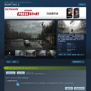 游戏《寂静岭 2:重制版》Steam 国区首次打折,6 折后 235.2 元起