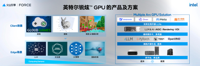 目前,英特尔与火山引擎HiAgent、华胜天成联合打造了基于英特尔锐炫显卡算力平台的HiAgent一体机方案,能够为市场提供高性价比、可扩展性更强的AI一体机方案。