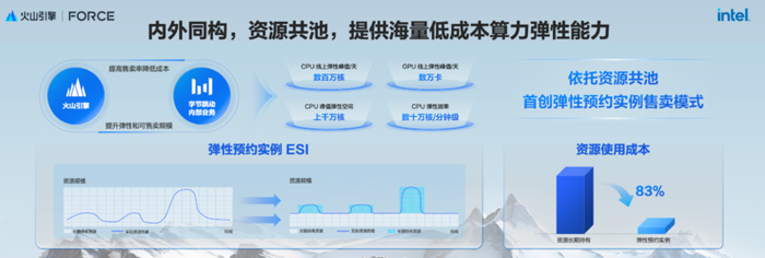 结合火山引擎推出了业界首创的"弹性预约实例"售卖模式,客户可以提前预约抖音的潮汐资源,同时获得按量使用的体验以及接近包年包月的价格。
