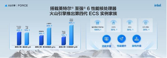 火山引擎2025春季原动力大会上,火山引擎与英特尔联合发布了全新第四代 ECS 实例家族,基于最新的英特尔至强 6 处理器,性能与架构全面升级。