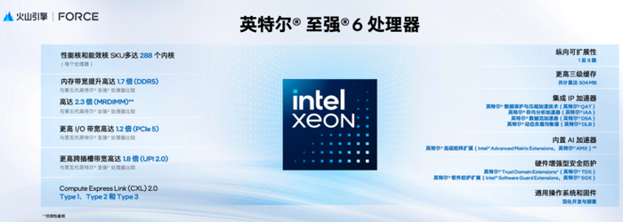 这些提升都以英特尔至强6处理器性能的大幅提升作为基础,在通用计算、Web service及AI等领域,至强6的6900系列CPU性能总体提升高达2倍以上,同时提高了1.4倍的性能功耗比改善。