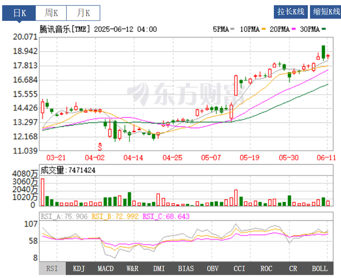 根据最新财务数据,2025年一季度腾讯音乐季度总营收73.6亿元,同比增长8.7%,调整后净利润22.3亿元,同比增长22.8%。