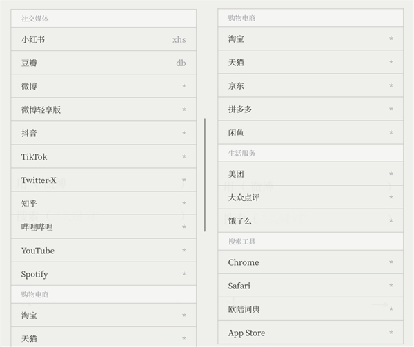 你可以按照自己喜好给 App 设定一个外号,比如小红书为“xhs”,淘宝为“tb”,豆瓣为“db”。