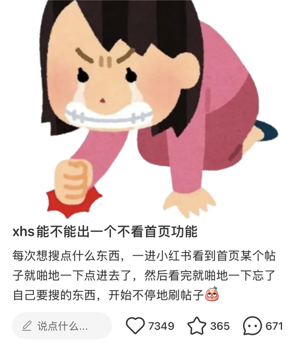 有网友恨小红书为什么没有“不看首页”的功能,每次打开后都忘记要搜啥了。