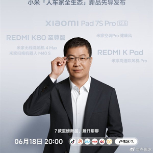 直播预热海报显示,这7款新品分别是REDMI K80至尊版、REDMI K Pad、小米平板7S Pro 12.5、米家无线洗地机4 Max、米家扫拖机器人M40 S、米家空调Pro健康风、米家高速吹风机Pro。