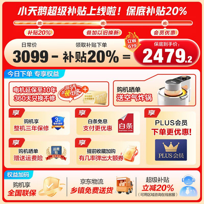 小天鹅小乌梅滚筒洗衣机10公斤水魔方冷水洗智能家电促销价1398.84
