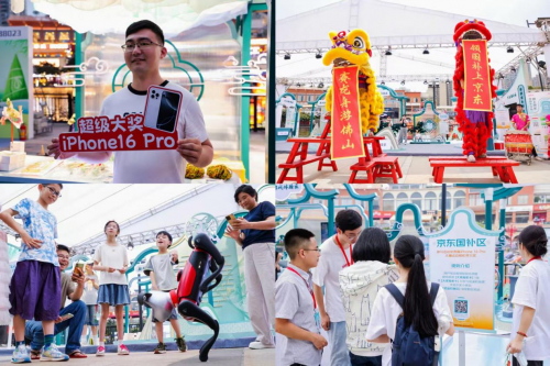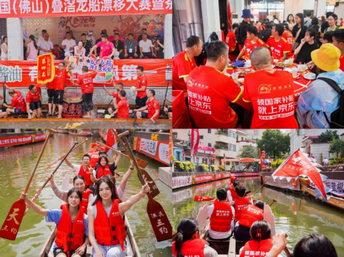 6月16日至6月18日,京东“3C数码国补中国行”佛山站落地岭南天地,打造定格之美打卡区、赛龙舟互动游戏区、电脑游戏体验区、手机体验区、奖品兑换区。市民游客可以参与互动任务,完成即可获得兑换卡并进行礼品兑换,集满4张兑换卡还可额外获得1次扭蛋机抽大奖机会。此外,6月15日,茶基J型赛区开赛,身穿京东LOGO的漖边队获得第四名的好成绩;6月16日,2025中国(佛山)叠滘龙船漂移大赛挑战赛,京东在赛道沿岸搭建观赛特装凉亭和摊位,市民游客现场参与活动可获得小礼品及大奖抽奖卡,还有机会获得专属龙船漂移体验。
