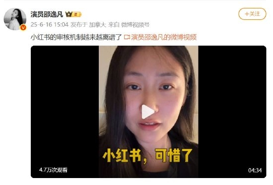 快科技6月17日消息,近日,在电视剧《安家》饰演张文芳一角的青年演员邵逸凡在社交平台公开发文吐槽小红书的审核机制。