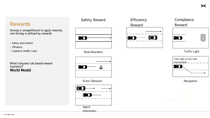 在这个阶段,小鹏以往辅助驾驶能力的研发经验也被用于设计强化学习的奖励函数,转化成了新的生产力。