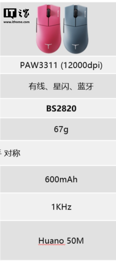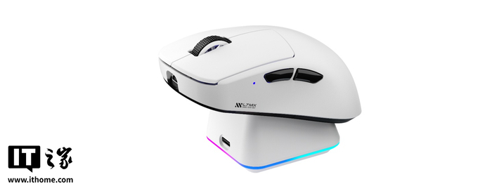 规格方面,这款鼠标搭载 PAW 3950 + 星闪海思 2826 芯片,支持有线无线 8KHz 回报率。鼠标搭载黑曼巴微动,标称续航 120 小时,此外鼠标还配备磁吸充电底座。