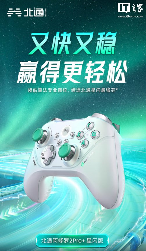 北通阿修罗 2 Pro+ 星闪版是首款获得认证的星闪游戏手柄,搭载全新一代北通领航算法 4.0,相比普通的无线游戏手柄拥有更高的回报率、更低的延迟,售价 309 元。