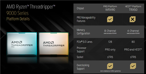 另外,撕裂者9000 PRO处理器可以安装在TRX50主板上,但是撕裂者9000系列处理器不能安装在专业的WRX90主板上。