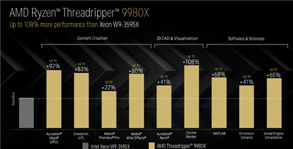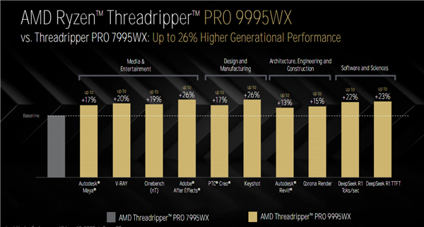 AMD Zen5线程撕裂者9000深入揭秘:领先竞品最多145%!四大金刚护卫