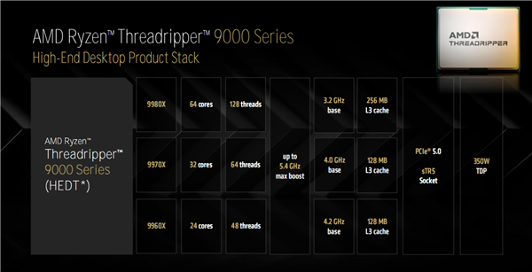 5月底的台北电脑展旗舰,AMD正式发布了基于全新Zen5架构的锐龙线程撕裂者9000系列处理器,包括面向工作站的撕裂者PRO 9000WX系列、面向发烧级桌面的撕裂者9000系列。