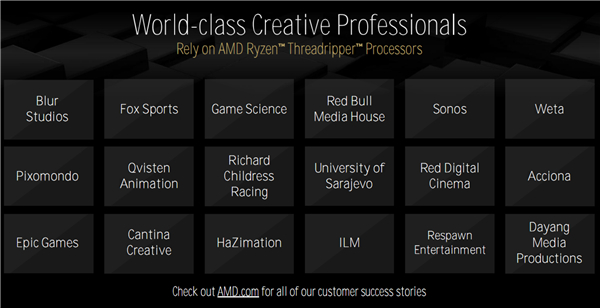 经过多年发展,AMD撕裂者系列已经得到了行业的普遍支持,各种专业软件都做了非常好的优化适配,可充分发挥其多核心、大缓存、丰富I/O等诸多方面的独特优势。