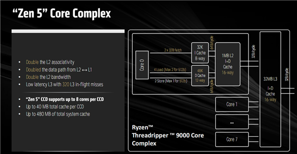 这是Zen5架构单个核心与整体的缓存体系。