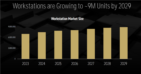 IDC数据显示,2024年,全球工作站市场规模接近700万台,而预计到了2029年,将增长至约900万台。