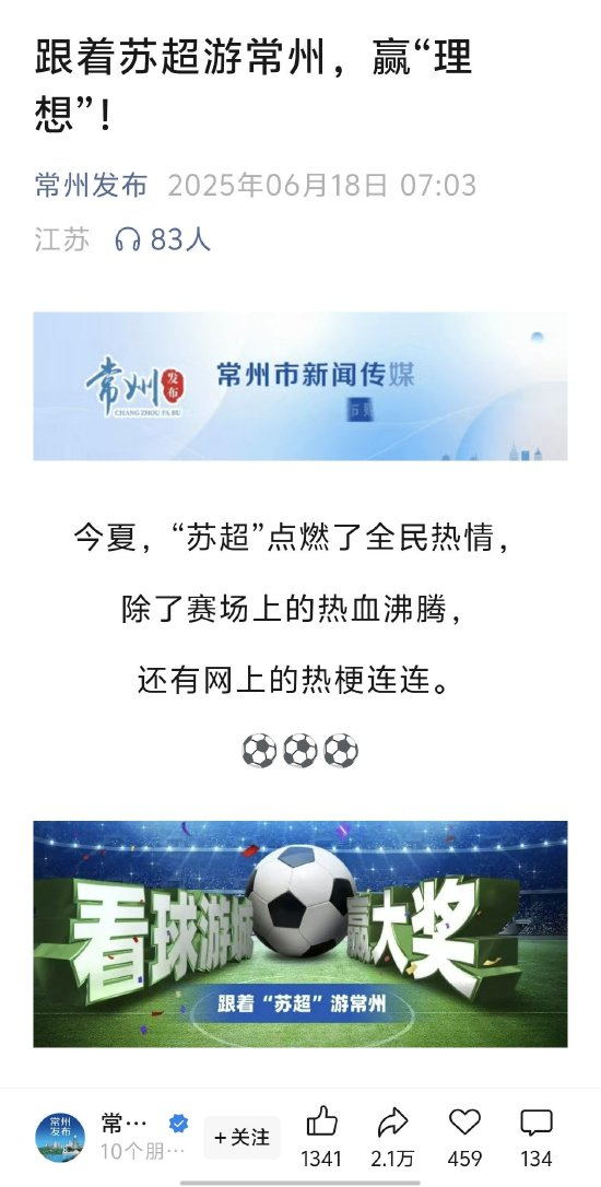 看“苏超”可抽奖理想汽车?常州官方发布活动:所有奖品均为常州智造的“土特产”