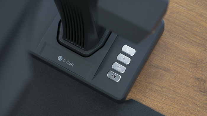 在成者AI扫描仪 ET28Plus的操作基座上,有着一列四个的按键,分别是LED灯光键、视频展台放大、缩小键和一个扫描按键。
