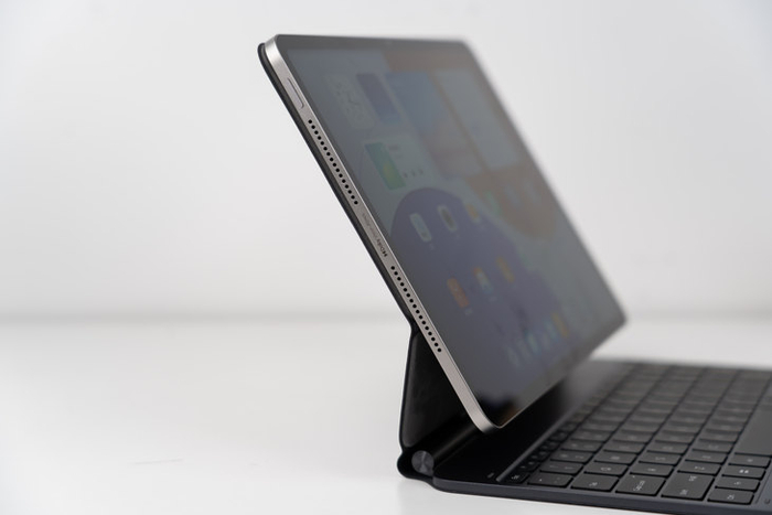 键盘部分采用了笔记本级全尺寸设计,按键尺寸大,键程舒适,还加入了背光。超大面积的触控板还支持震动反馈,采用这款键盘后的平板办公体验与笔记本非常接近。