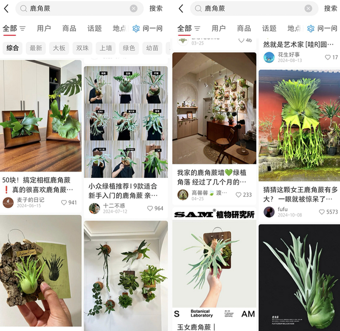 6月19日,据天猫最新发布的数据显示,618期间鹿角蕨热卖超50万盆。平台上,热带植物搜索同比翻倍增长,成交同比增长超过40%。在淘宝直播间,有热带植物因为独特外观卖出了每片20000元的历史记录。