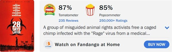 目前该片的烂番茄指数远超科辛斯基/布鲁克海默/布拉德·皮特/刘老汉的《F1:狂飙飞车》,也超过了原作《惊变28天》:
