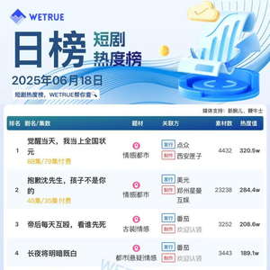 1、本日榜为WETRUE短剧数据公司提供,新腕儿和鞭牛士提供联合支持。